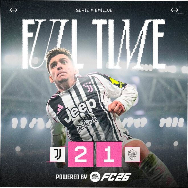 2025年12月21日 尤文2-1羅馬分列四五名+分差縮至1分 孔塞桑破門奧蓬達意甲首球